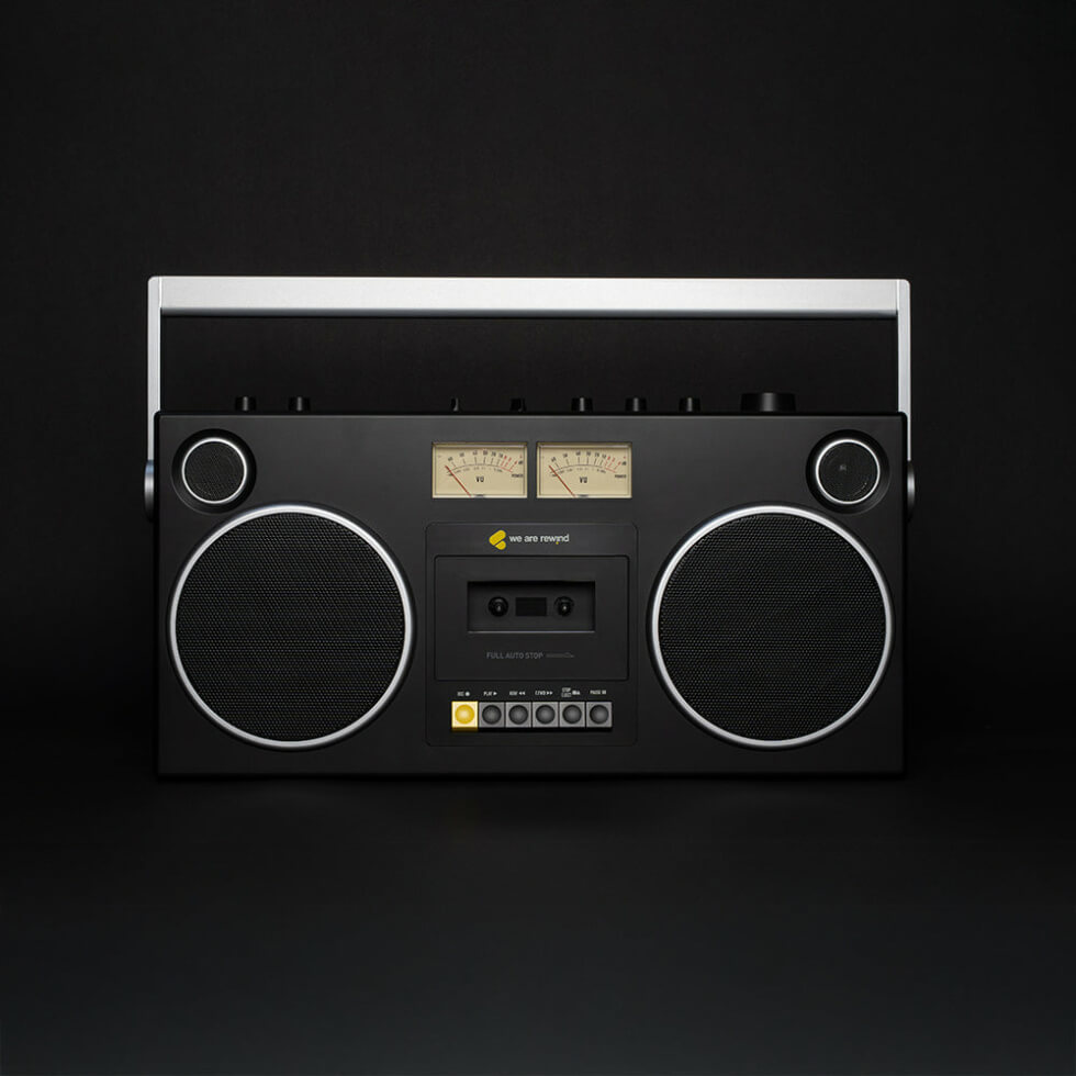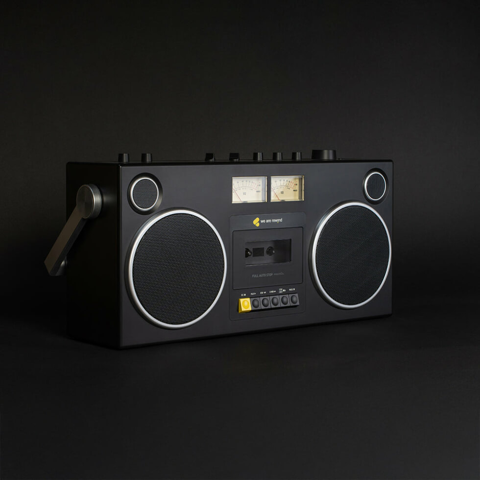 We Are Rewind stays true to its name as the Blaster•Curtis flaunts a distinct retro design. It resembles old-school boomboxes but packs modern technology. It “isn’t just a cassette player/recorder that rivals home cassette decks—it also delivers exceptional stereo sound with a full-spectrum stereo image, thanks to its separate left and right woofers and tweeters.”