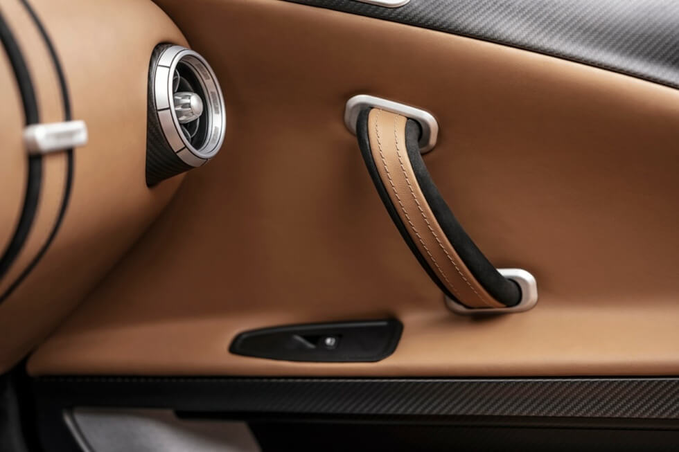 With no engines to take up valuable space, the front and rear compartments are purely for cargo and luggage. Wiesmann goes for an aluminum spaceframe chassis with a carbon fiber body. The composite also makes its way to the Project Thunderball’s cockpit as it creates a wonderful contrast against the fine leather upholstery.