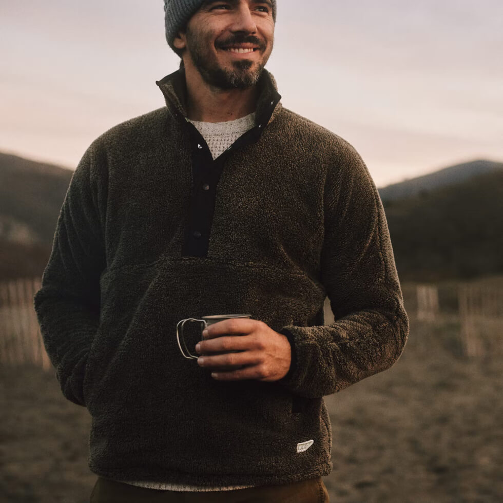 Wellen’s Windsurf Fleece Snap Pullover keeps you cozy without looking drabby. It is available in Speckle Olive and Speckle Grey colorways.