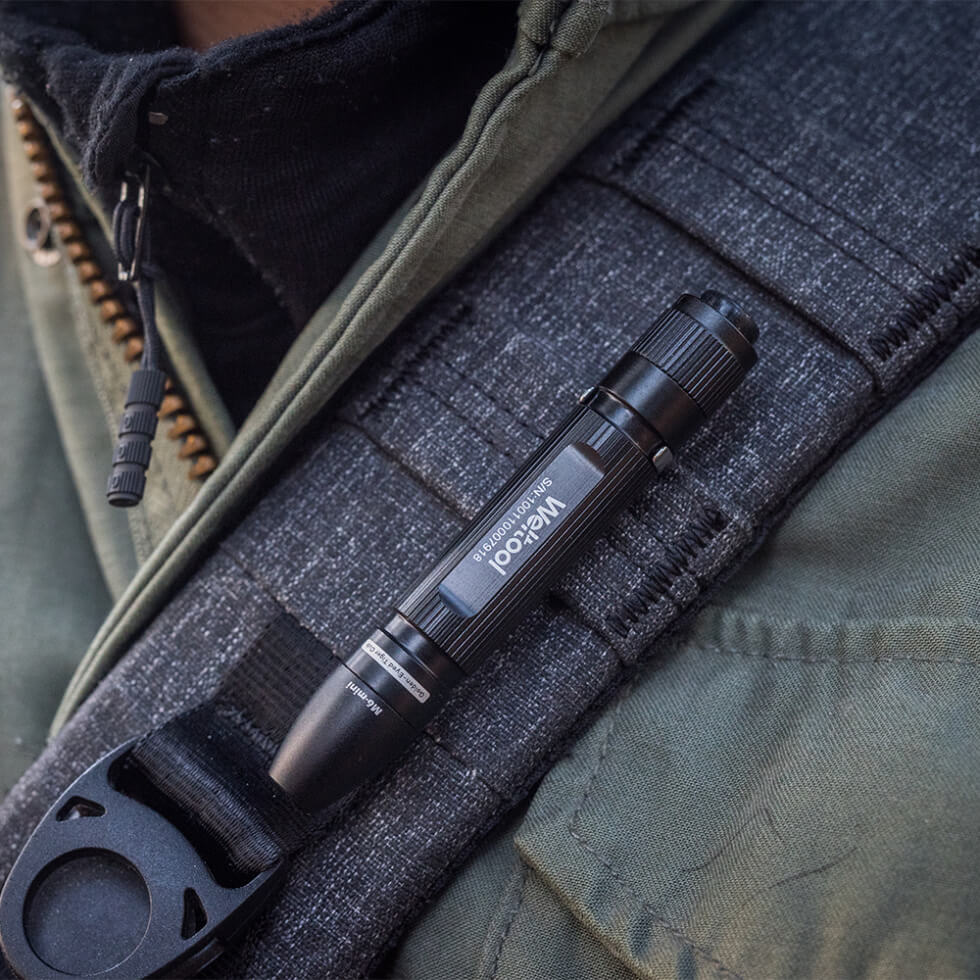 The Weltool M6-Mini LED flashlight makes a great everyday carry torch for many reasons. For starters, it’s very compact at just 3.46″ long and 0.55″ wide. It has a steel clip to easily attach to shirt pockets, hat visors, and more. Then it’s built for the outdoors with a shell made from anodized aerospace 6061 aluminum alloy that is IP65-rated water resistant. It can survive the rain, mud, or snow.