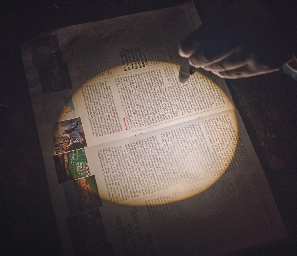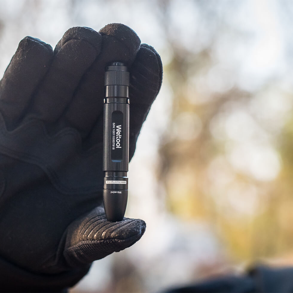 The Weltool M6-Mini LED flashlight has a professionally-designed output curve with a light emission angle of 70 degrees and a high transmission (over 90%) optical glass lens. This results in a perfectly even-lit circle of light with a perfectly circular field of light without dark spots, no glare, and no distracting uneven lighting anywhere.