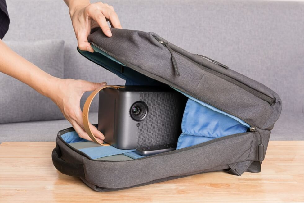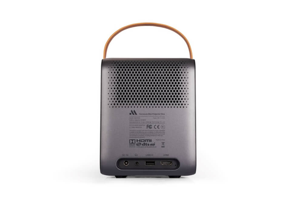 This device also has Google Assistant ready on its companion remote control. It comes with 16GB of memory and over 5000 apps to choose from including Google Play, Spotify, YouTubeTV, and more. Its compact size with added carrying handle makes it ideal to bring to work for PowerPoint presentations or at family gatherings. The WeMax Dice Portable Smart Projector even doubles as a portable charger with its 3-hour battery pack.