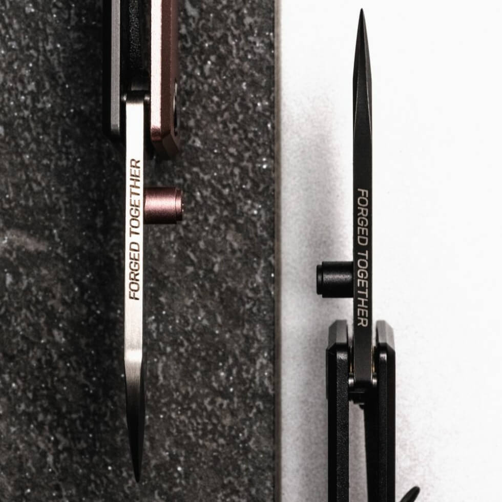 Meanwhile, the handle features aluminum on the front with Grade 5 titanium on the back side. Compact and portable, the knife spans 3.75″ long when opened and just 2.25″ when closed. It weighs merely 1oz (28g) and has a lanyard hole and pocket clip for added portability. The “Forged Together” collection is a reminder that “whether you’re side by side or miles apart, you’ll always have a reminder of the bond you share.”