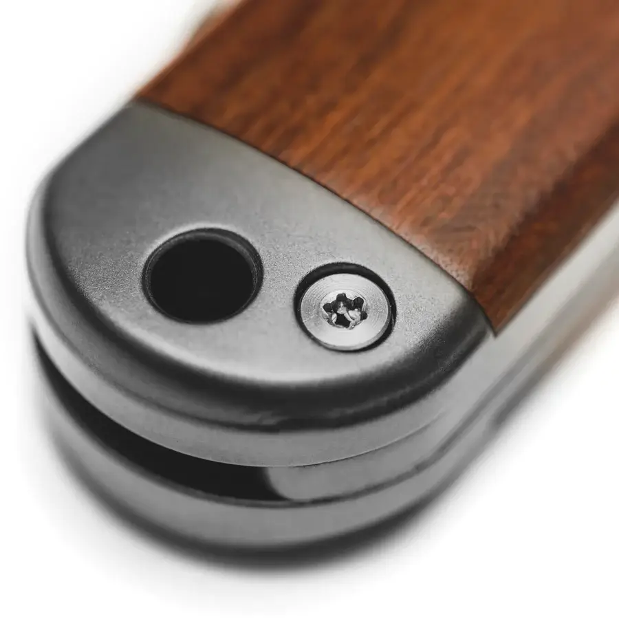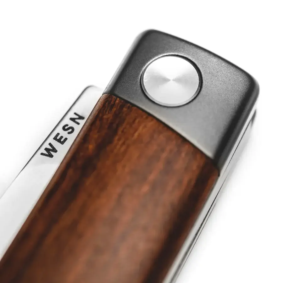 This means the WESN The Henry Pocket Knife holds great edge retention. It is also resistant to corrosion, doesn’t easily chip or roll, and is easy to sharpen. As for its handle, it is light in the hands and in the pocket thanks to its Grade 5 titanium construction. The handle comes with or without beautiful cherry wood inlays.