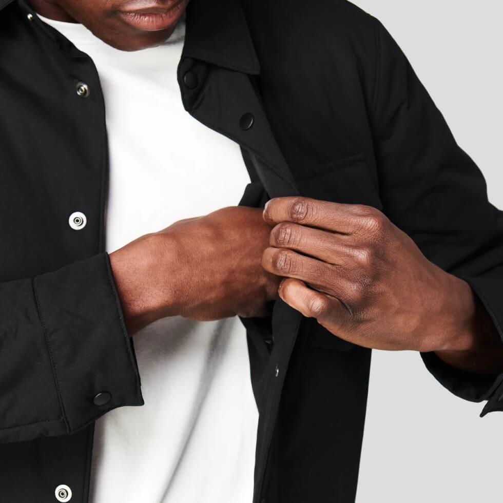 Thirdly, this shirt jacket uses 100 percent Primeflex 50d 102gsm polyester coated with C6 DWR for the exterior fabric. This combination helps repel dirt, stain, and water and optimizes the jacket for cold situations. Water turns into beads upon contact for an easy wipe-off clean.