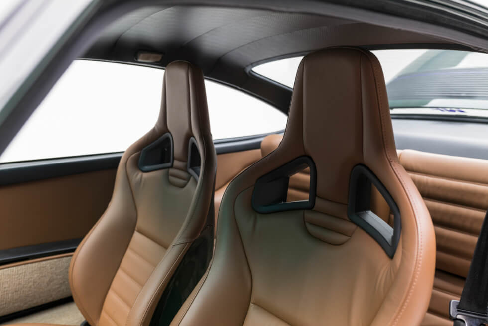 Behind its front wheels shod in Michelin or Bridgestone tires are 964 brake calipers. Meanwhile, the handcrafted WF body kit includes the front skirt, side skirts, rear bumper, and steel fenders. The WF G34 also flaunts a revamped cockpit with Recaro Sportster CS/CS Cross front seats, original rear seats, a WF shifter, and leather upholstery all over.