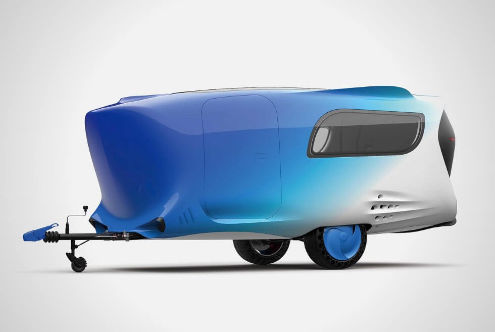 Another would be camper trailers which is what this is. Credit for this crazy concept goes to Hu Yong, for an outline that resembles the majestic marine mammal of its namesake. The Whale Trailer Cabin sports a stylish gradient blue coat which gradually transitions into white at the bottom.