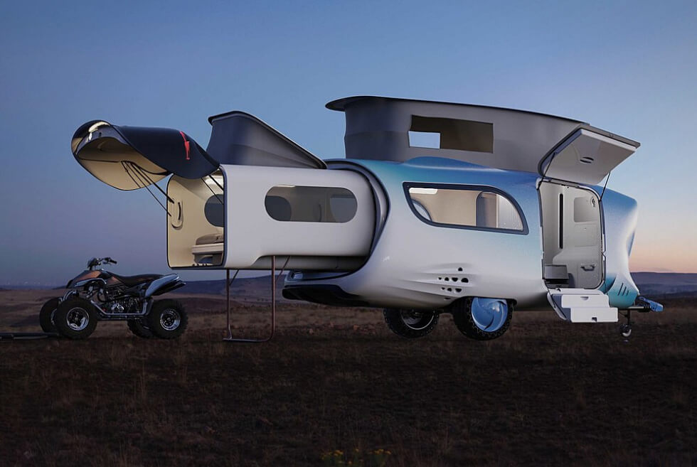 It may not look exactly like the animal during transport but wait till everything is deployed. When you are ready to hunker down, sections of the camper trailer open and extend to reveal even more. There are talks of its modular characteristic, yet the images show us the default trim.