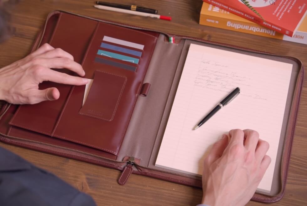 Calendars update themselves, and notes are stored in the digital ether, while meetings happen in coffee shops and apartments. As much as we live and work digitally, we still show up in person. Carrying a leather portfolio into a room affects how you are seen — clicking into a folder on your laptop much less so. But, in our dematerialized age, it’s also a signal of how and why we work. Portfolios announce your presence, preparation, and personal standards in a work world that becomes more transient with each passing day.