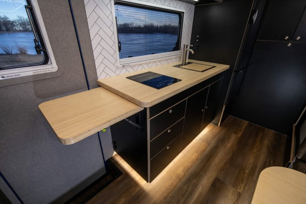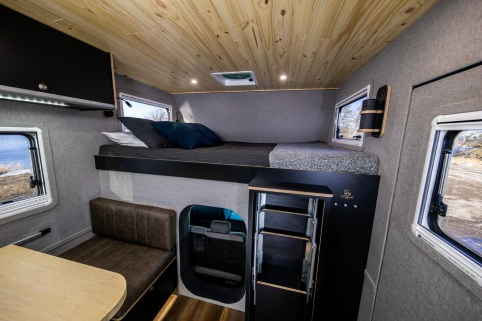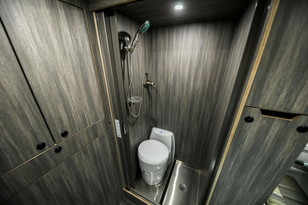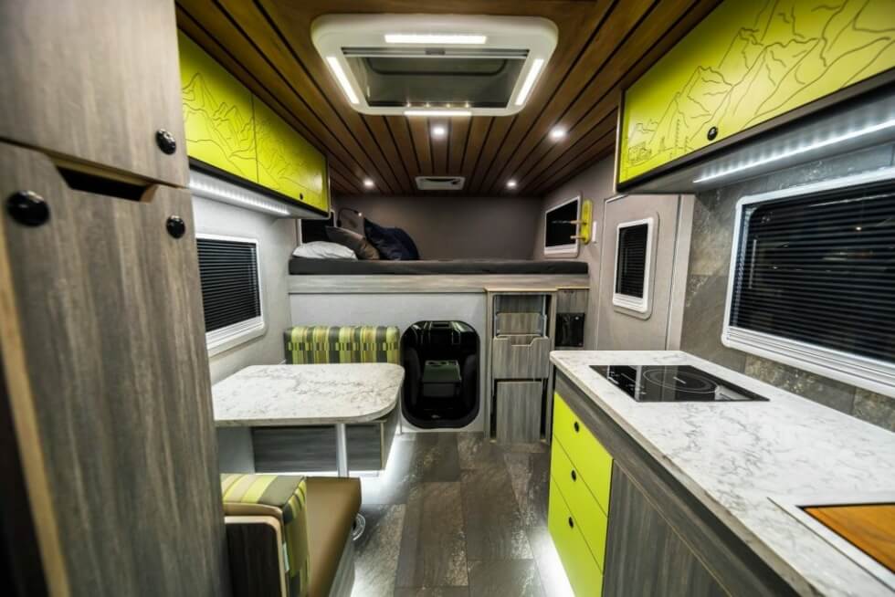 The GRID Series Campers from Wilderness Vans lets you sleep soundly with various bed options. It offers over-the-cab sleeping with bed springs and custom mattresses and folding seat beds in various sizes. Meanwhile, the bathroom has a 12V 14L hot water heater and stainless steel shower. You can also do the dirty deed via a cassette/composting toilet and there’s an exterior toilet waste disposal.