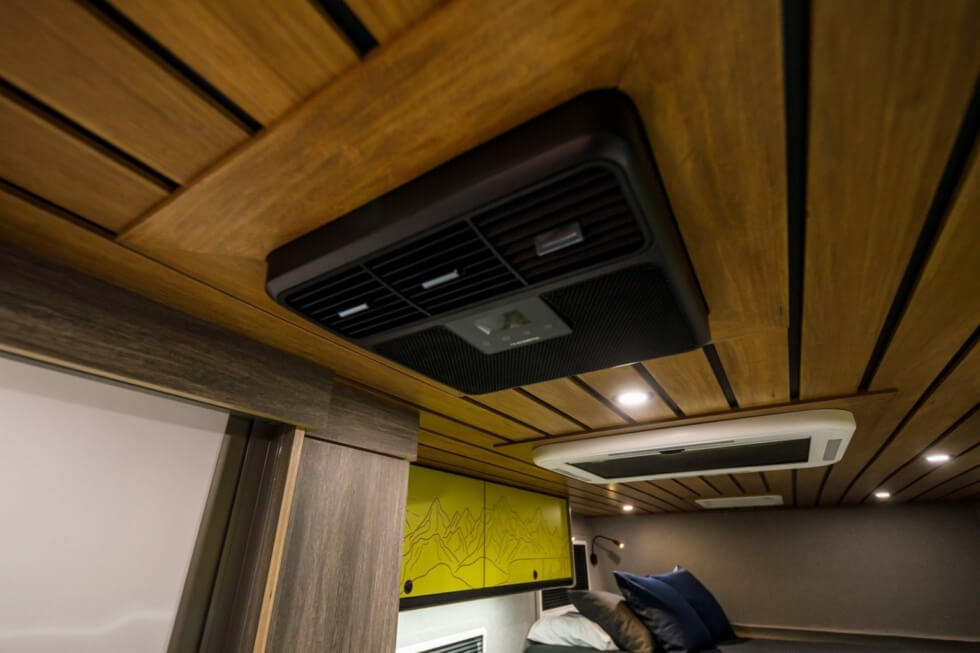 Aside from the broad arrow flat windows for ventilation, these campers are ready to tackle any weather. It offers a 12V AC unit, a thermostat-controlled diesel heater, a Maxxfan Deluxe 7500K ventilation fan, and a skylight for fresh air. The built-in pleated blind and bug screen also keeps mosquitoes at bay.