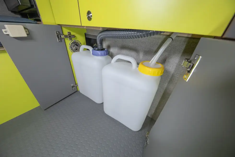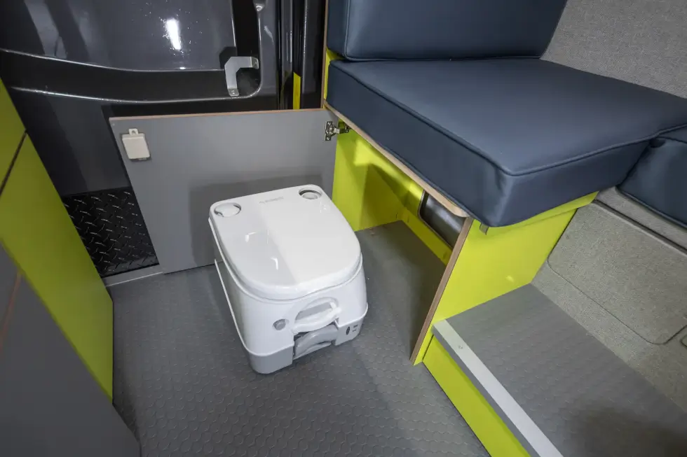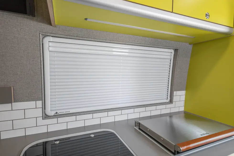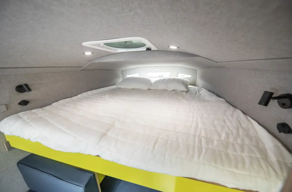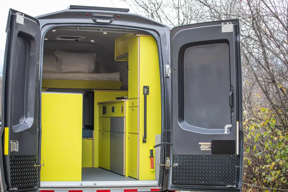 According to Wilderness Vans, there’s a galley with a sink and stove, a 2.7 cu/ft fridge, a Maxxair fan, a Wallas cooktop/heater, a toilet cabinet, rear storage cabinets, and a 19-liter fresh/19-liter grey water tank. Configure your Range camper’s off-grid capabilities with solar panels up to 350W, USB/120V outlets, a battery bank/circuit breaker panel, a battery monitor, and more.