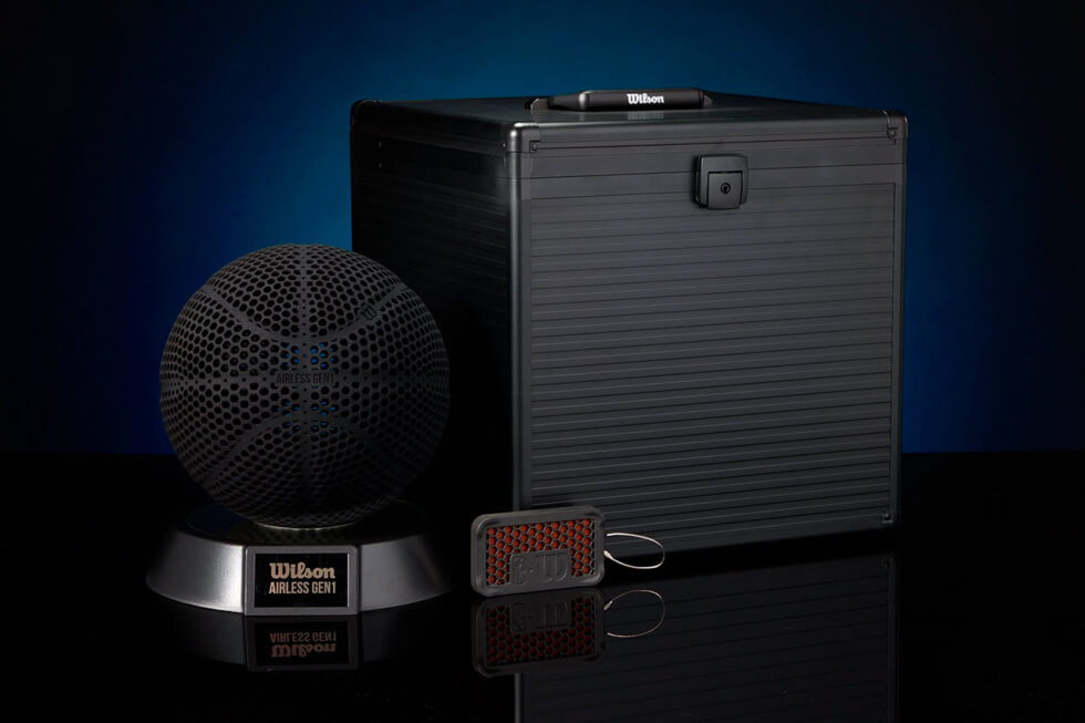 “The basketball nearly fits the performance specifications of a regulation basketball, including its weight, size and rebound (bounce). The form of the ball features 8 panel-like lobes and a familiar seam structure, with hexagonal holes across the surface allowing air to pass through freely,” describes Wilson. The Airless Gen1 is now on sale.