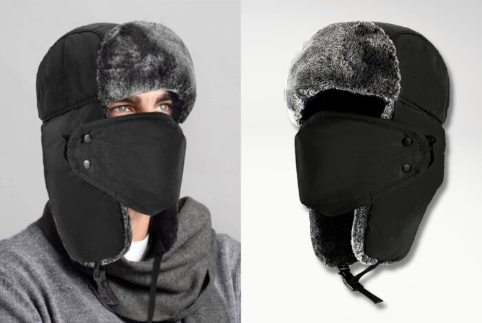 The hat is cut in the classic Russian pilot hat style, using a waterproof polyester shell and polyester fur insulation that will keep out even those sub-zero winds. It includes not only ear and forehead flaps, but also a removable (and washable) mask to shield your mouth and nose. Take it out snowboarding, shoveling, or sledding, and your head and face will never feel the cold.