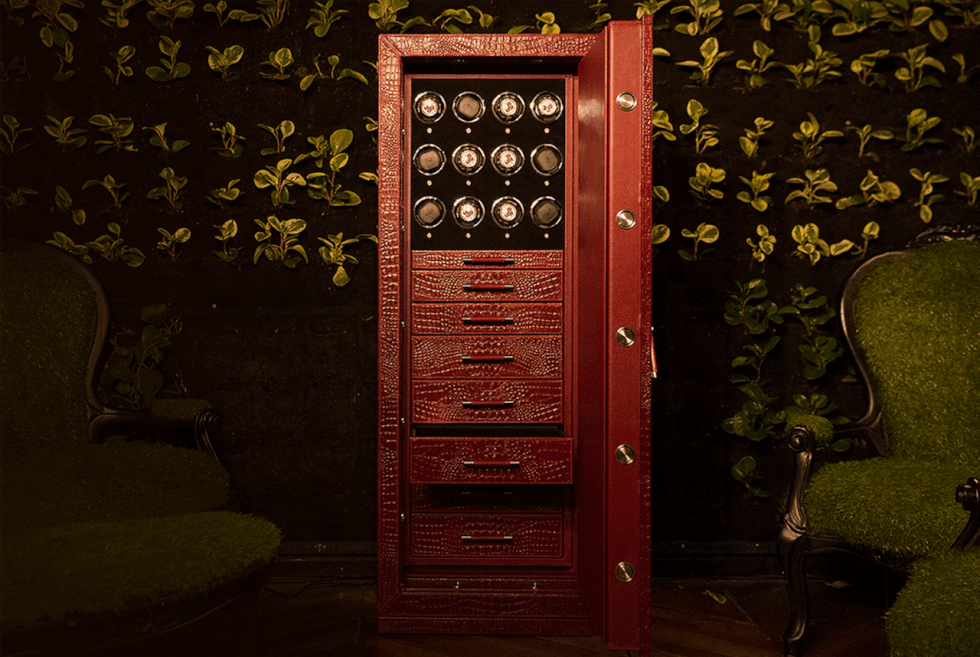 The manufacturer is forging the Churchill in steel with 9 bi-directional steel bolts holding everything together. It is using Sargent and Greenleaf keypads, which are some of the best names in vault and safe technology out there. Lush materials like top-grain cow leathers and rare wood give the watch safe an exquisite vibe.
