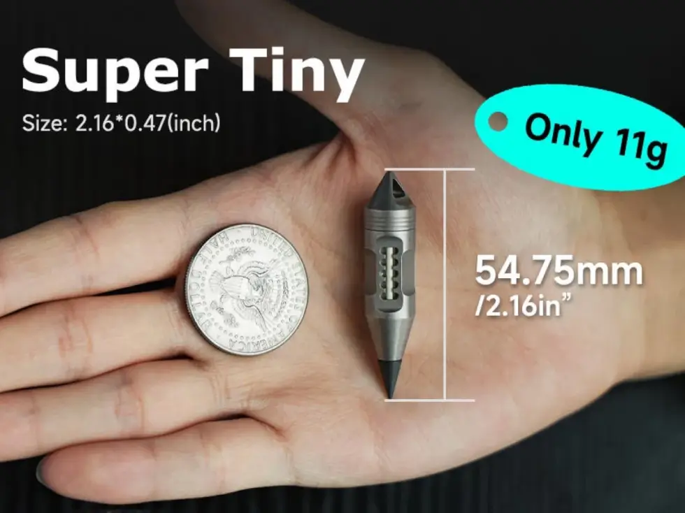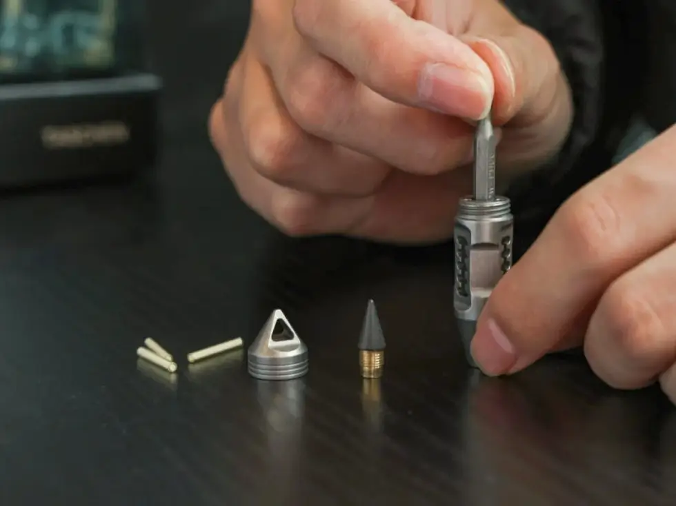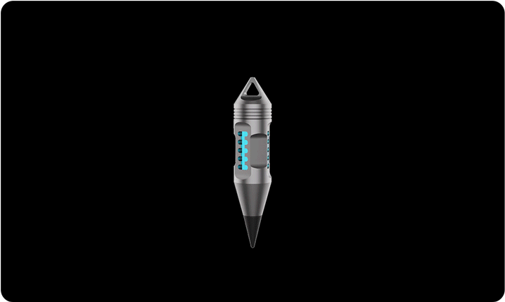 The Wolf Fang 2.0 is a revolutionary multi-functional EDC with essential tools for simple indoor and outdoor tasks. It has an eternal pen, a bit driver and holder, a pry bar, and a lantern. All the tools seamlessly integrate into a sleek, compact, and lightweight yet tough titanium shell.