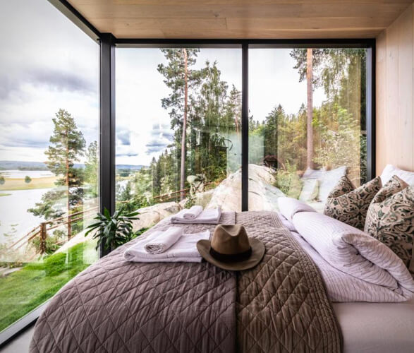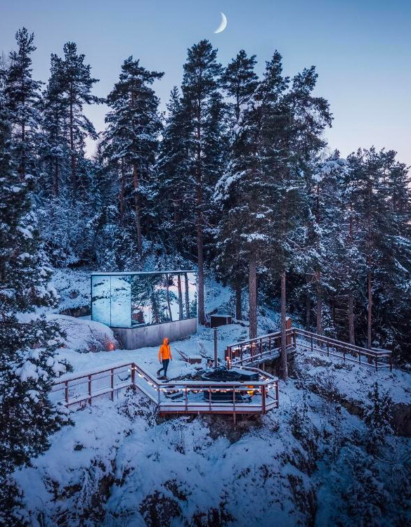 The WonderInn Glass Cabin lets you immerse in the wilderness while still within reach of civilization. It is a stunning retreat nestled in the peaceful nature reserve of Nordre Oyeren, Norway, just a 25 minute drive from the center of Oslo.