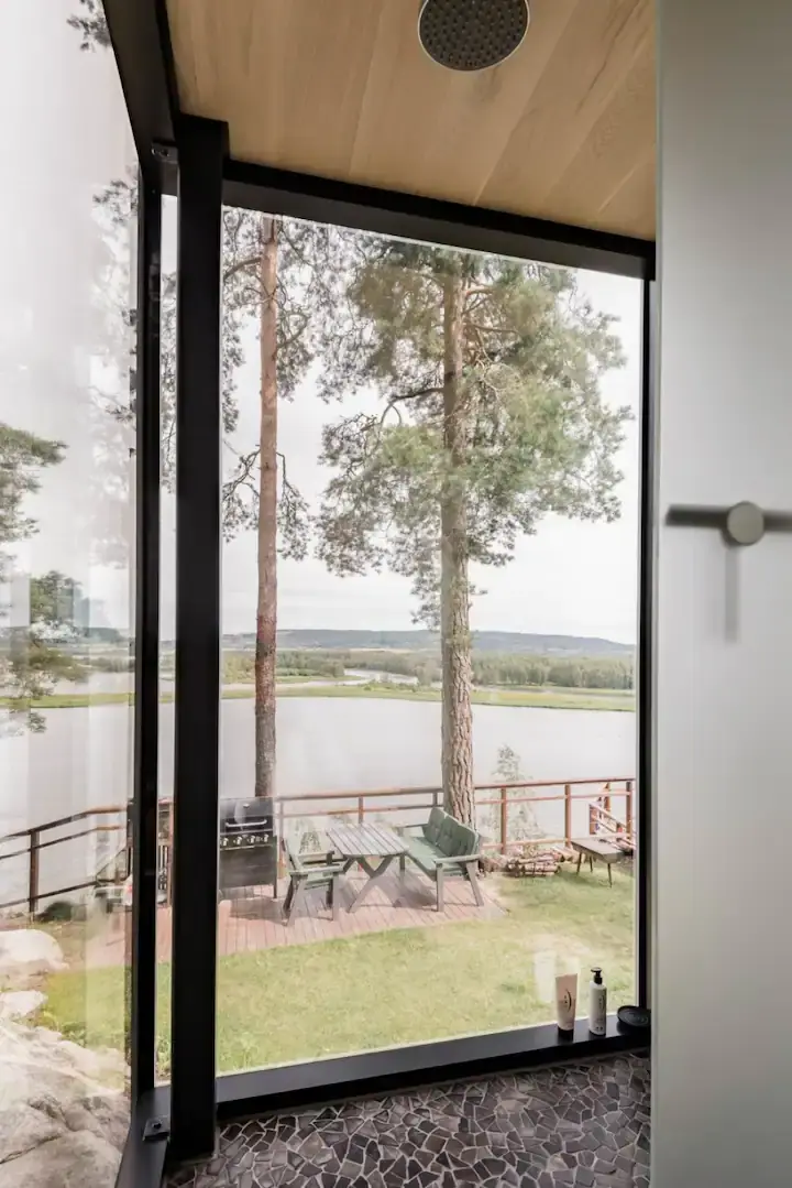 Meanwhile, a private jacuzzi offers an unrivaled view of the delta. This retreat cabin can host four guests, two can occupy the additional annex. About 150 meters away from the cabin is a small pier with a boathouse at the water’s edge where a canoe is available for rent so guests (max three) can explore the nature reserve from the water. The area is home to moose, beavers, deer, ospreys, and eagles.