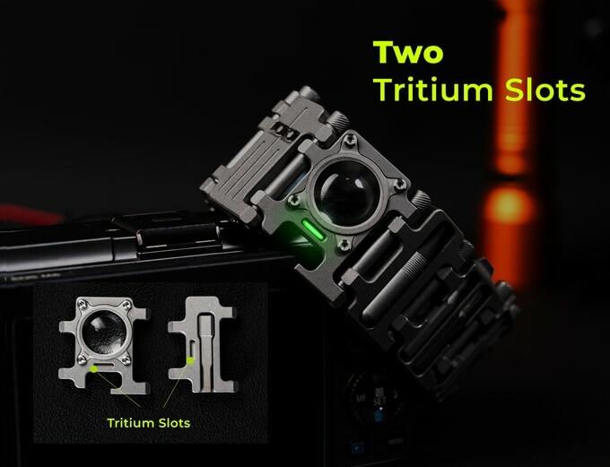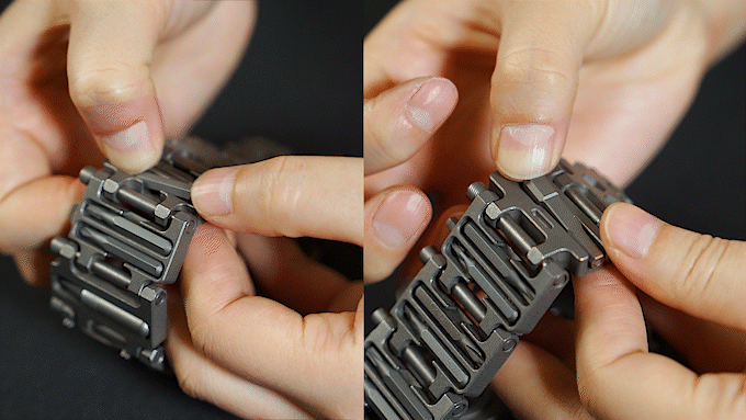TiLink also has a fire starter, a nail file, a survival whistle, and an eternal pen. It also has a built-in five-hole wire gauge to measure wires, cords, or screws (3.5mm, 3mm, 2.5mm, 2mm, 1.5mm). Meanwhile, two 1.5 × 6 mm tritium tube slots add both style and visibility to the bracelet in low light conditions. The link are adjustable so you can dial in the right fit for your wrist.