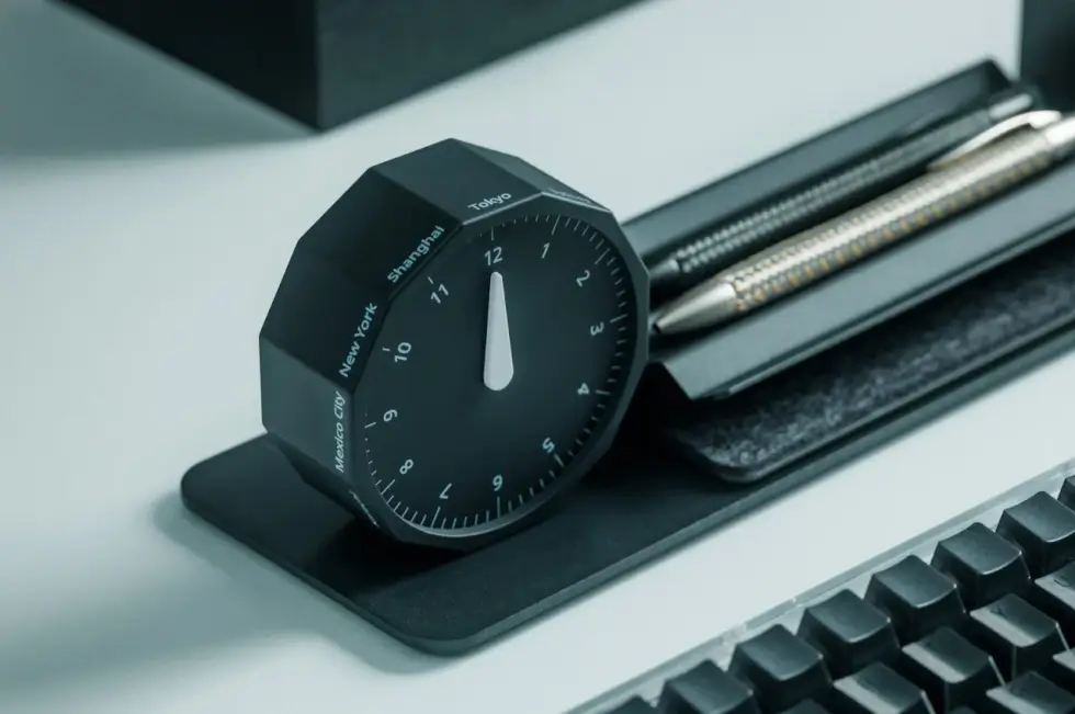 This minimalist analog clock looks unassuming with its simple unheard of dodecagonal shape. It also only has one hand instead of two. But it makes checking the time in different countries easy, less of a chore, and feels almost like a game.