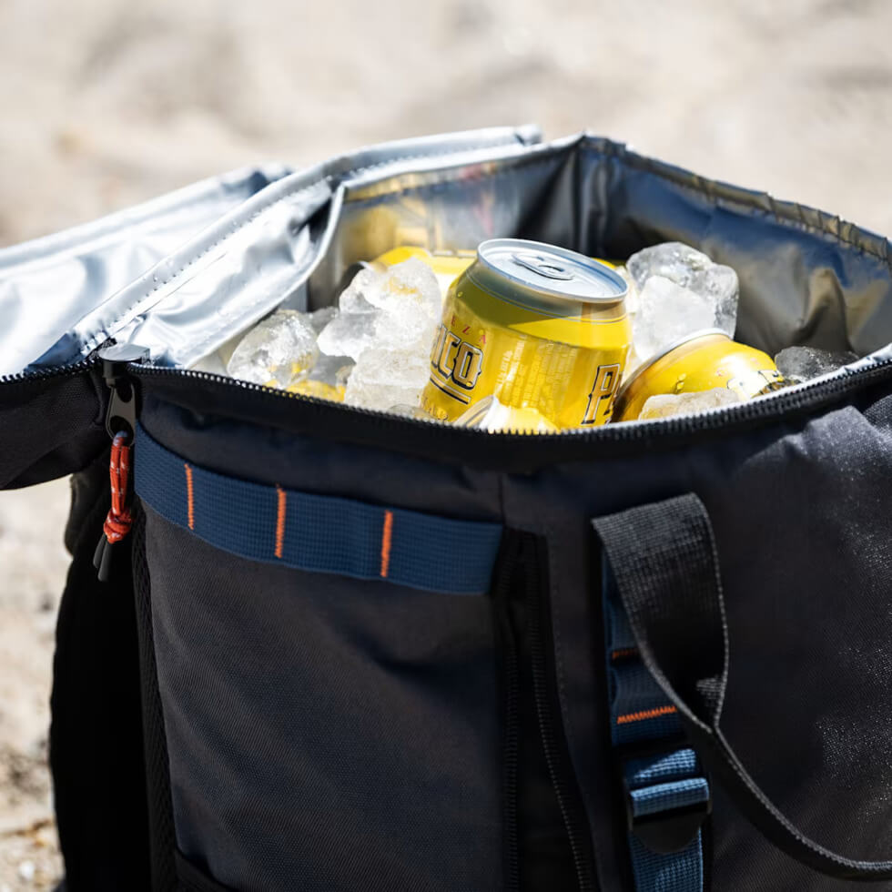 Open the top zipper to reveal an insulated PEVA interior that can amazingly fit a full case at a weight of just 0.65kg. It can hold 24 loose cans or a boxed 12 pack of your favorite beers or drink. It can even fit slim ice packs like those from WREN to keep drinks cold for hours. It’s also leakproof and has a water-resistant polyester exterior so your beverages stay protected from the elements.