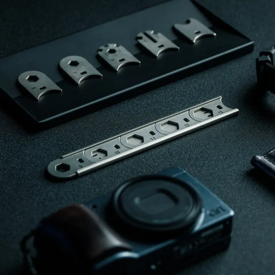 This minimalist pocket wrench with its interchangeable hex wrench system is lightweight and thin so it stays comfortable in your hand and fits neatly in your pockets. The width is barely an inch at just 0.91, is only 5.28″ long, and slim at 0.16″. No need to rummage around the toolbox and lose precious time or carry a screwdriver or other tools separately while on the go.
