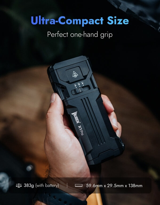 The WUBEN X1Pro is for adventurers and explorers who value both quality and performance in their outdoor gear, especially the handheld torch. This flashlight blasts a blinding 13,000 lumens from its compact and robust aluminum shell.