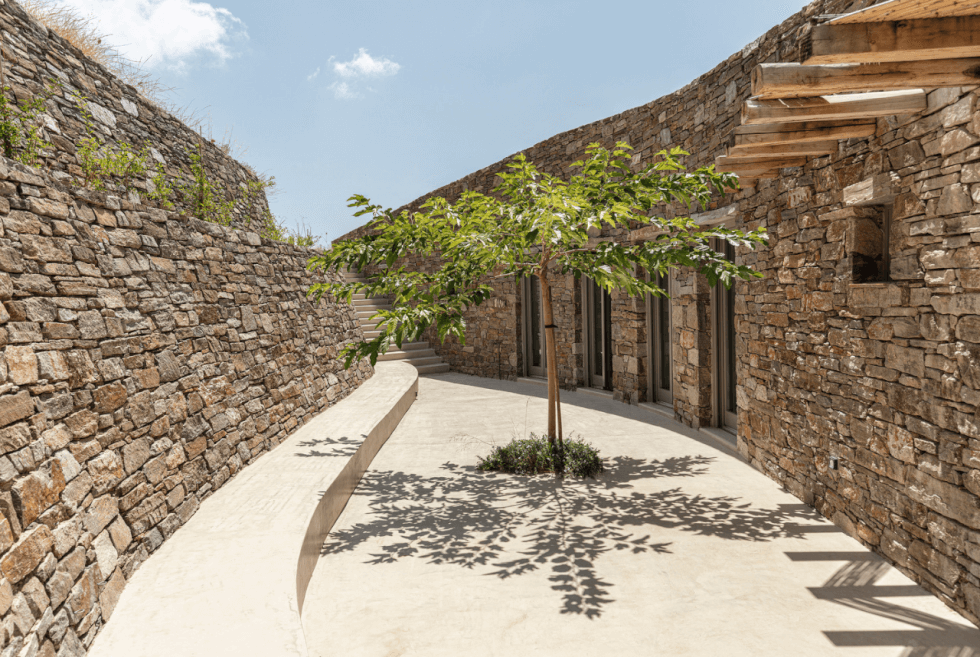 Although the home is remarkably modern in construction, the exterior is a different story. The studio maintains the motif of what visitors can normally see when they tour the island. The Xerolithi House shows a canvas of dry stone walls – locally called xerolithies — to give it a natural aesthetic. It occupies a total floor space of 2,637 square feet.
