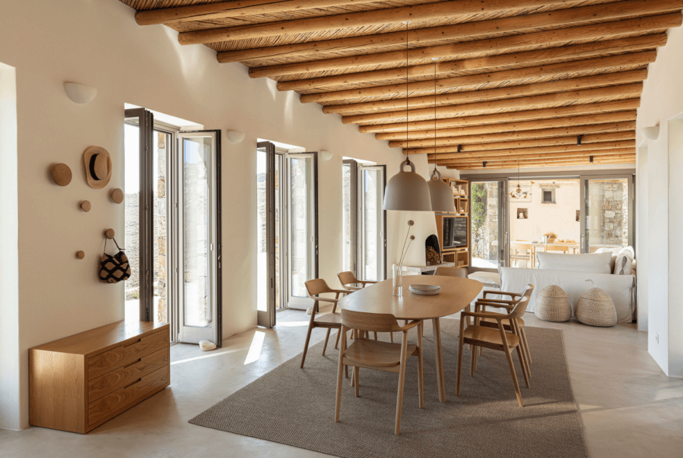 Some sections of the large terrace are covered which is great for entertaining guest over dinner al fresco style. The Xerolithi House looks like our idea of enjoying a leisurely life in the countryside. Sunrise and sunset would look magnificent with the Mediterranean vibe.
