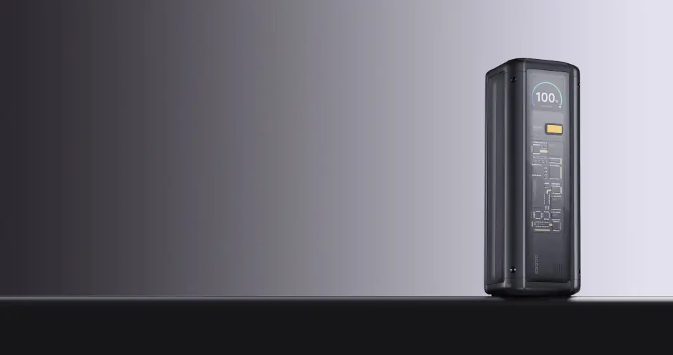 Design-wise, the 212W HyperCharge is as sleek as power banks get. It touts a futuristic look with its rectangular form factor, curved edges, and transparent panels. A vibrant color display allows users to view all relevant information about the device in real time as well as its the remaining energy left. For portability, it measures 55.4 mm x 55.4 mm x 160 mm yet feels hefty to hold.