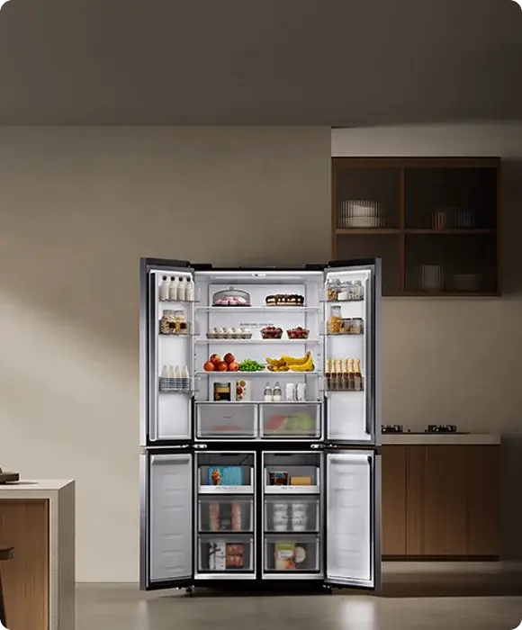 Moreover, the Mijia Refrigerator Cross Door 502L has an antibacterial silver ion module (Ag⁺) that keeps food healthier and fresh for longer. It neutralizes the common fishy smell in seafood and vaporizes spoiled food odors. The Ag⁺ module also reduces harmful bacteria like E. coli using efficient antimicrobial defense.