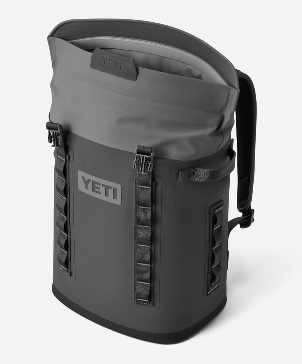 The YETI Hopper M20 Backpack Soft Cooler uses the innovative MagShield Access that works on powerful magnets to create an ultra leak-resistant shield. The wide mouth stays open when you need it to. This way you can easily load in bottles, cans, food, or ice. It stays sealed during travel with a gentle push.