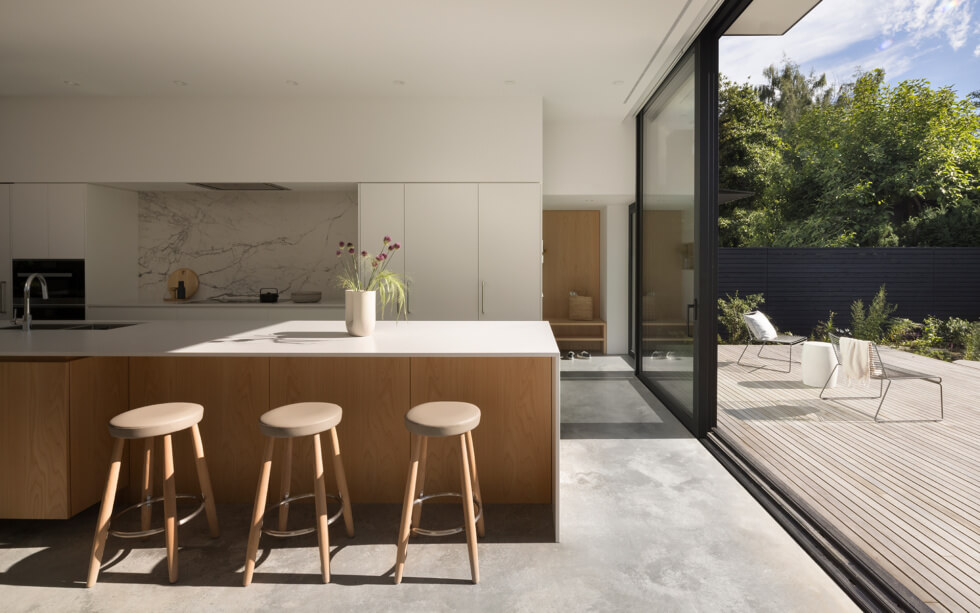 Minimalistic yet fully functional and elegant. This is the Yield House by Splyce Design. From the outside, it attracts attention with its glazed corners. It also looks like two rectangular volumes stacked on top of each other.