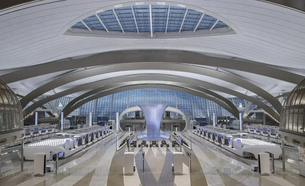 The portal which was cosmetically overhauled is a part of Abu Dhabi International Airport (before the latter was renamed to Zayed International Airport). This major undertaking was awarded to Kohn Pedersen Fox (KPF) and the results tell us it was an excellent decision to do so.