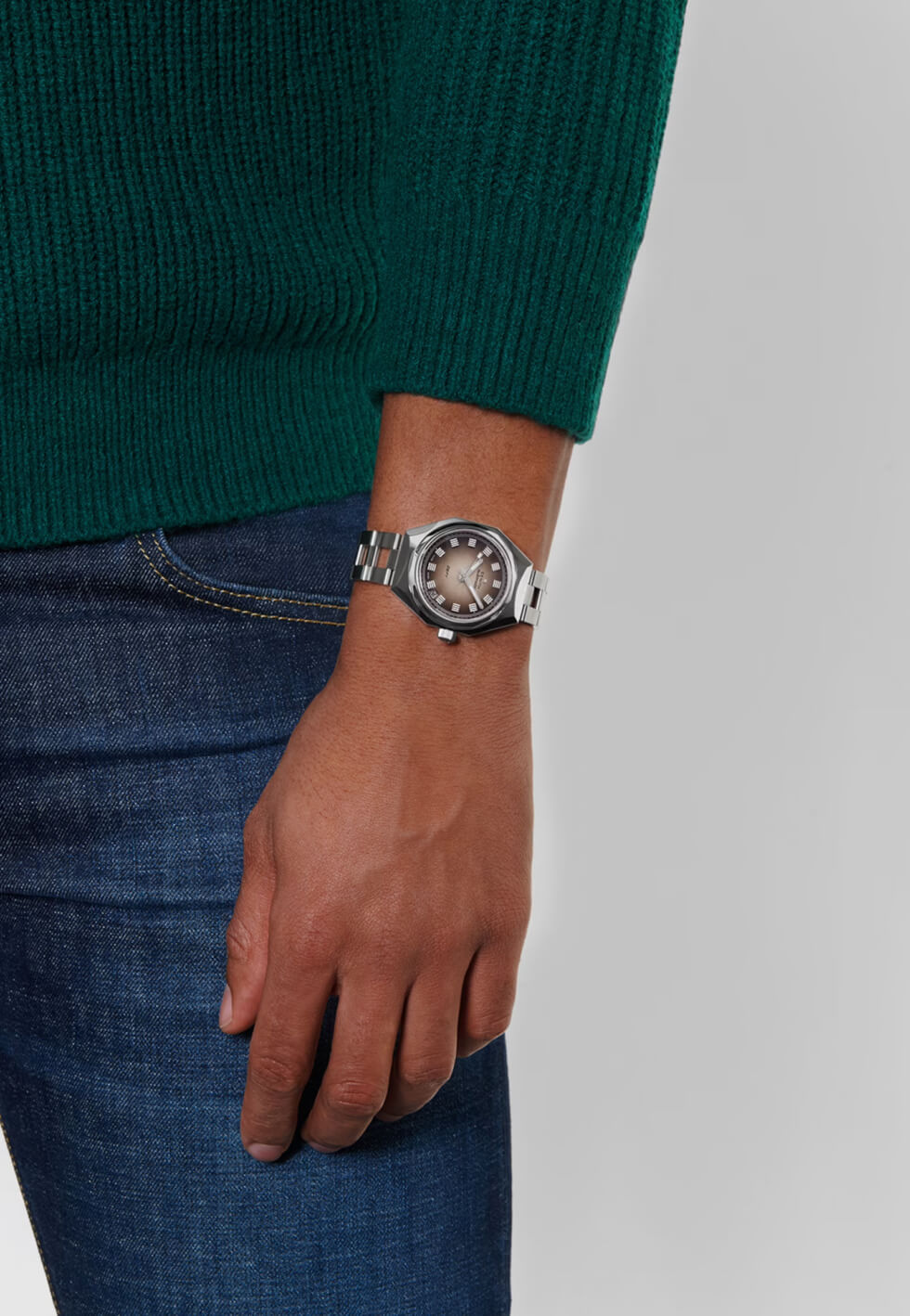 The branding was previously spelt as “Défi” on their pocket watches but was eventually anglicized to Defy when the wristwatches were released. Zenith presents the watch in a 37 mm stainless-steel case. We want to describe it as a stylish take on a tonneau form factor with its geometric edges.