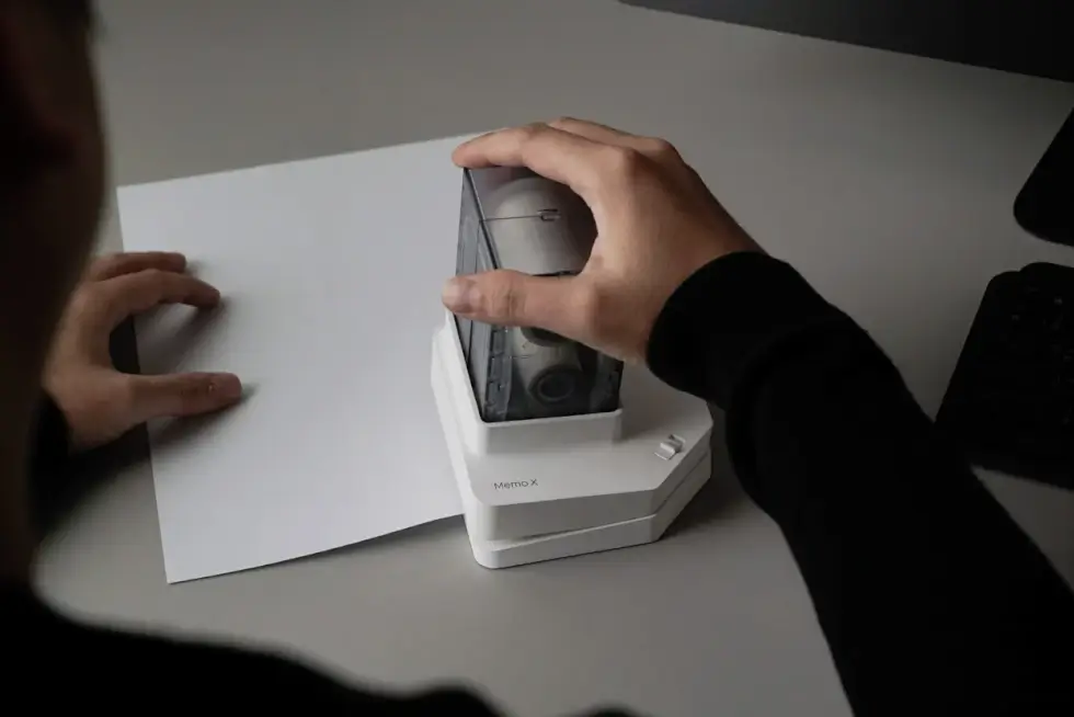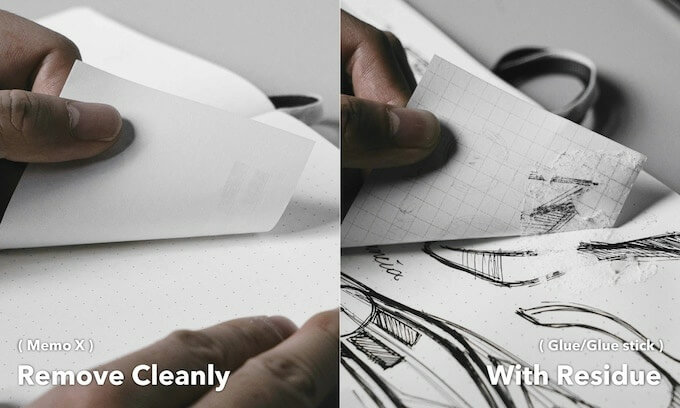 The Memo X comes with two rolls of adhesive good for 250 applications each. The tape roll has one side with a flat layer of adhesive that has a larger contact area and it permanently stays on the memo paper. Meanwhile, the other side has a spherical acrylic glue that attaches to objects without peeling off their fibers when removed. This way, allowing the adhesive for repeated use. Moreover, a press and pull up motion on the upper sides of the device separates it into a stamp dispenser and portable cutter with the blade safely hidden to prevent accidents.