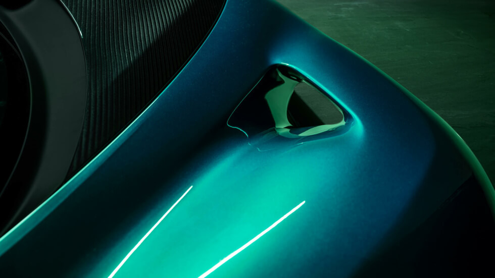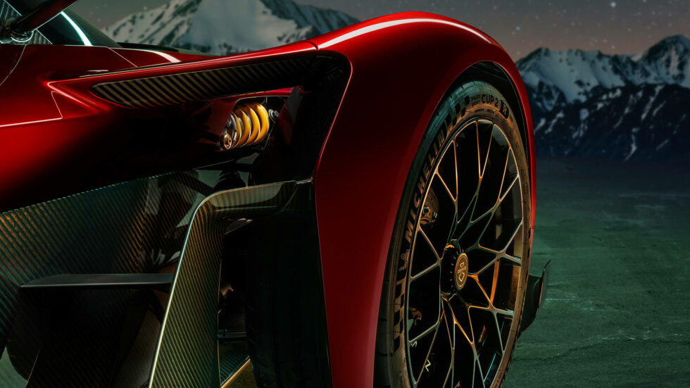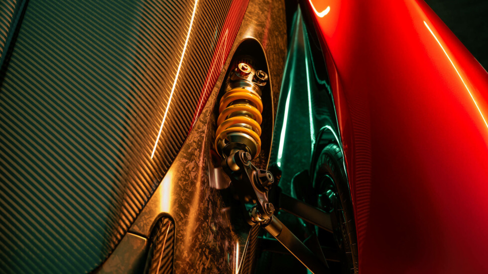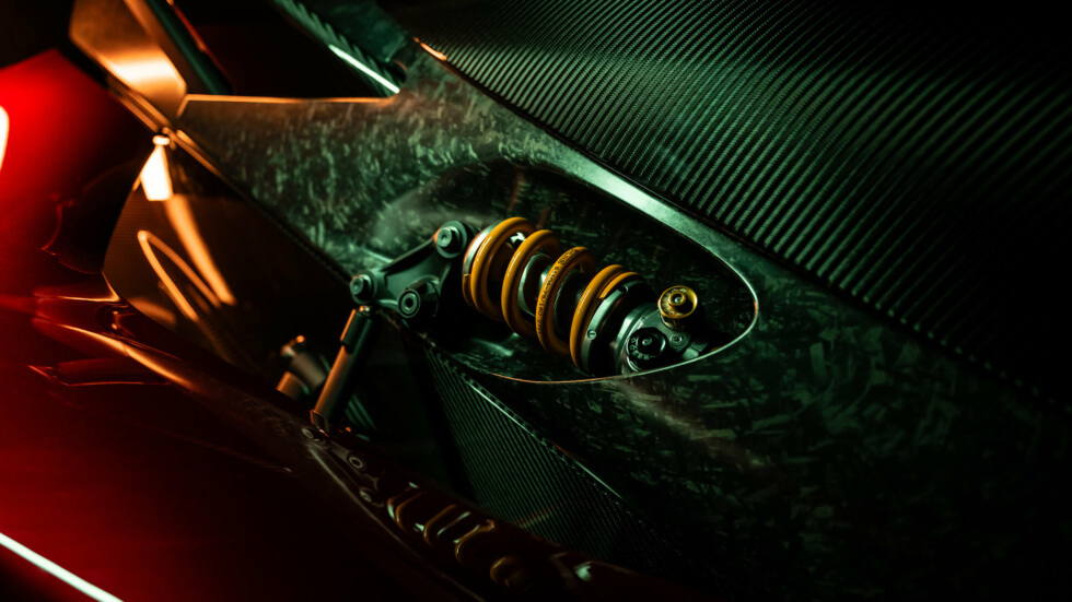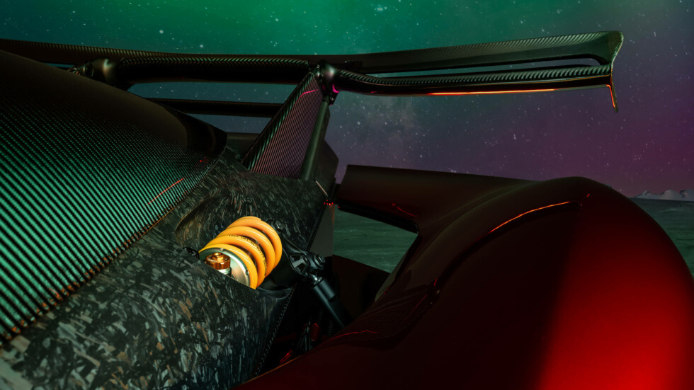 Chief Designer Christian Brandt stated, “The chassis and the components of Aurora are all works of art, and we made a very definite decision that we did not want to hide these details away under a monolithic design. It is like a complex timepiece or the skeletal architecture of a motorcycle, where the inner workings are the fascinating part, and we wanted to showcase as much of the chassis, the engine, and the suspension as we could.”