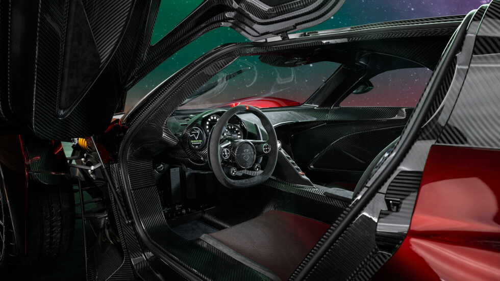 Starting with the Aurora Agil, this version may be considered entry-level by hypercar standards. It’s outfitted with a 6.6-liter quad-turbocharged V12 good for a staggering 1,450-horsepower rear-wheel-drive setup. What it somewhat lacks in output (by thrill seeker standards) is made up for in weight savings.