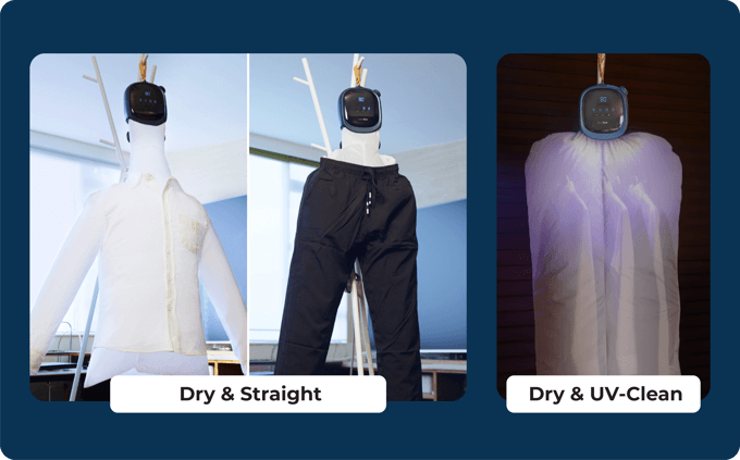 Launbot even has a built-in UV-C light to remove mites, odors, tiny insects, and other microorganisms. It comes with a Drying Bag so you can put five garments max for either drying and ironing or for UVC-cleaning. It even has a dedicated spot to put a freshener. Moreover, the device is user-friendly, with buttons that let you select the mode and time.
