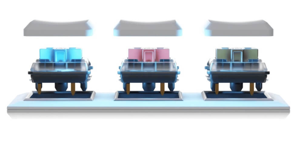 ZSA indicates that the Voyager’s base measures 8 mm and another 8 mm from the top of the keycaps to the surface of the case. Therefore, we’re looking at a typing accessory that’s only 16 mm thick overall. This is likewise possible courtesy of the Kailh low-profile Choc mechanical switches (brown, blue, red).